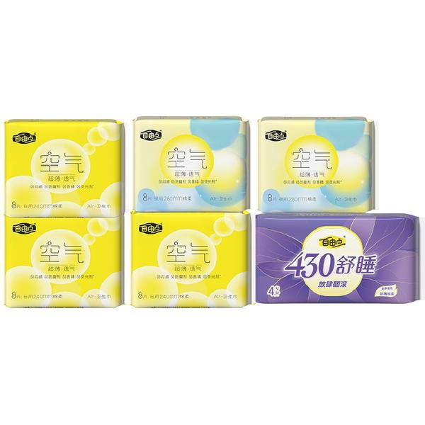 【超薄透气】自由点卫生巾姨妈巾空气日用夜用组合无感7日亲肤